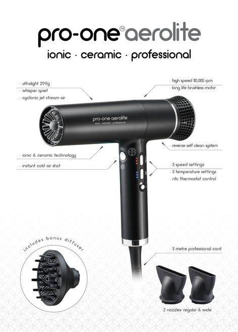 Featherlight Power - Discover the Pro-One Aerolite Hairdryer Experience revolutionary drying performance with the Pro-One...